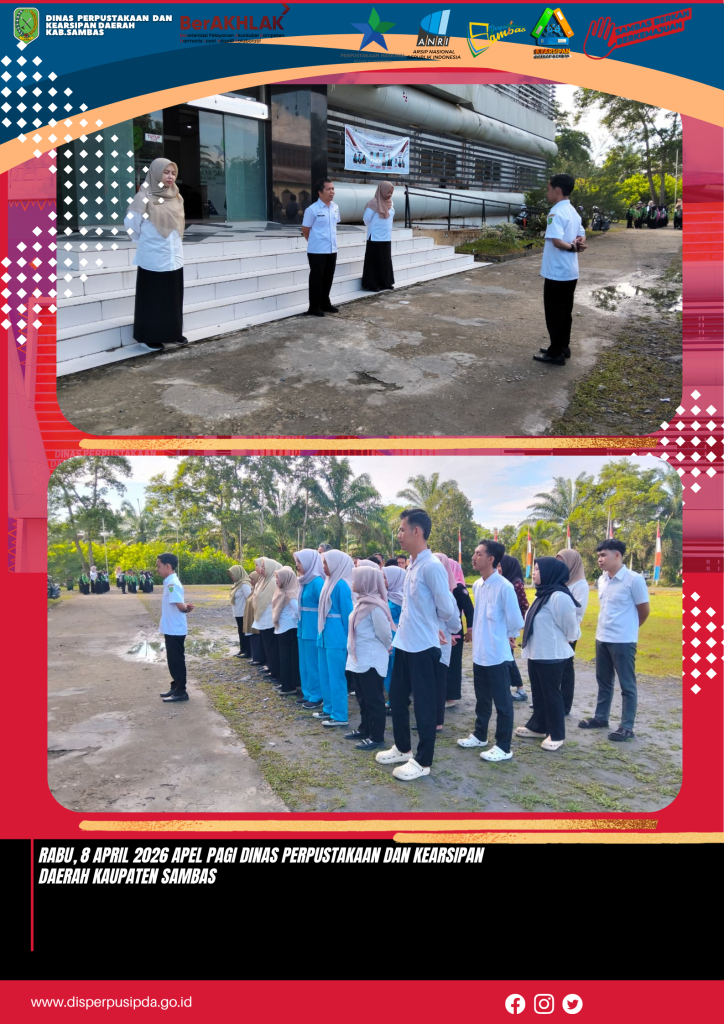 Sambas- Rabu, 8 April 2026 Apel Pagi rutin di Lingkungan Dinas Perpustakaan dan Kearsipan Daerah Kabupaten Sambas