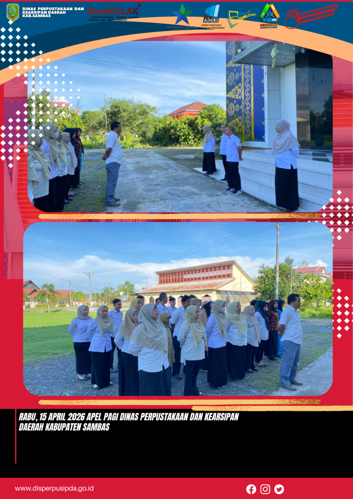 Sambas- Rabu, 15 April 2026 Apel Pagi rutin di Lingkungan Dinas Perpustakaan dan Kearsipan Daerah Kabupaten Sambas