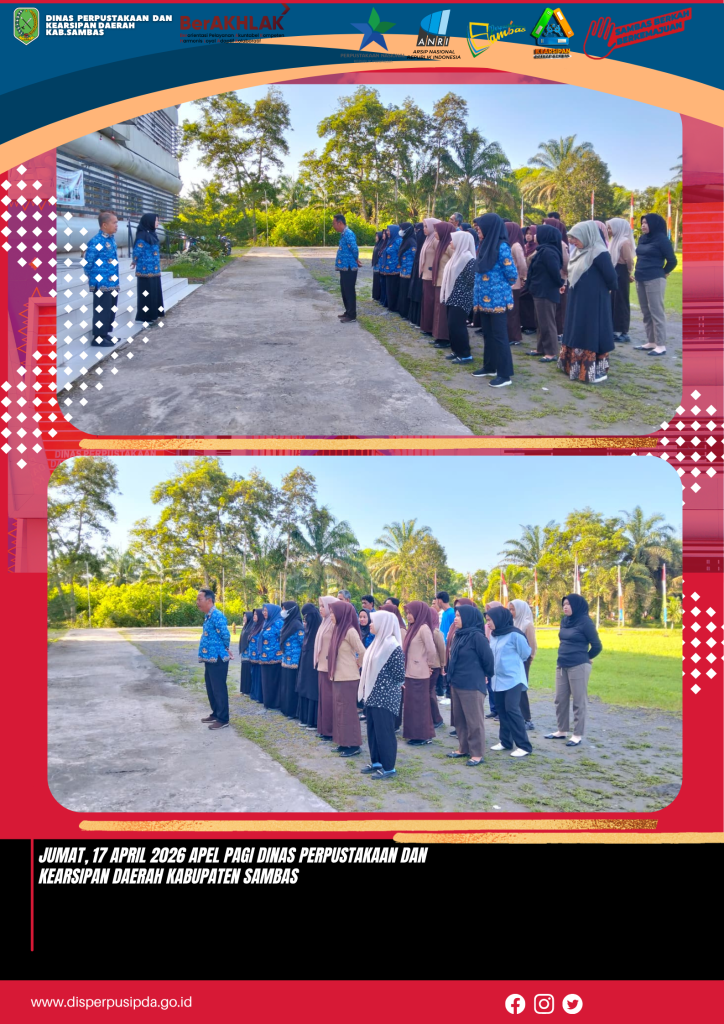 Sambas- Jum’at, 17 April 2026 Apel Pagi di Lingkungan Dinas Perpustakaan dan Kearsipan Daerah Kabupaten Sambas yang di Pimpin langsung Oleh Plt. Sekretaris Dinas.