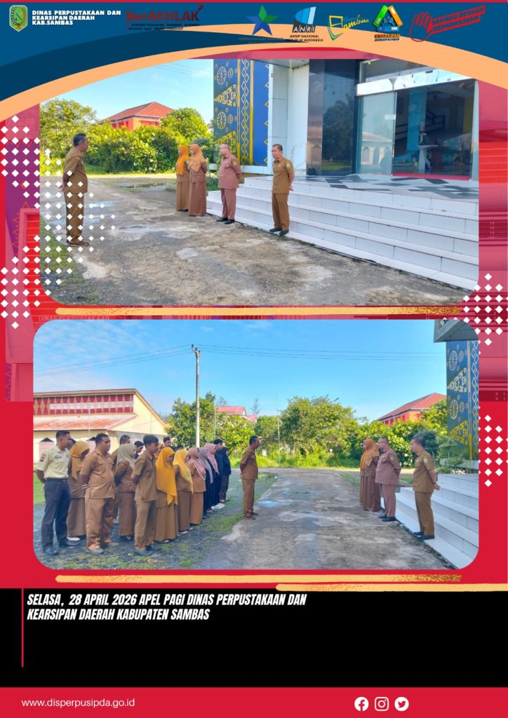 Sambas- Selasa, 28 April 2026 Apel Pagi di Lingkungan Dinas Perpustakaan dan Kearsipan Daerah Kabupaten Sambas yang di Pimpin langusng Oleh Kepala Dinas