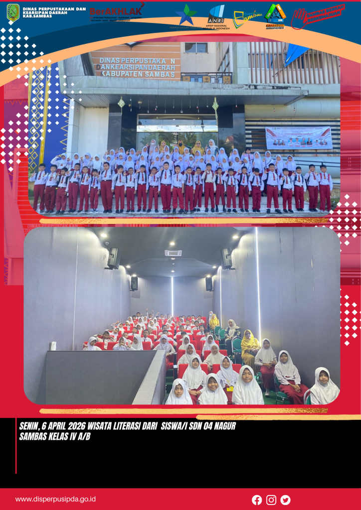 Sambas- SENIN, 6 April 2026 Perpustakaan Daerah menerima kunjungan dari SDN 04 nagur Sambas yang terdiri dari beberapa Siswa/i dan Guru Pendamping.